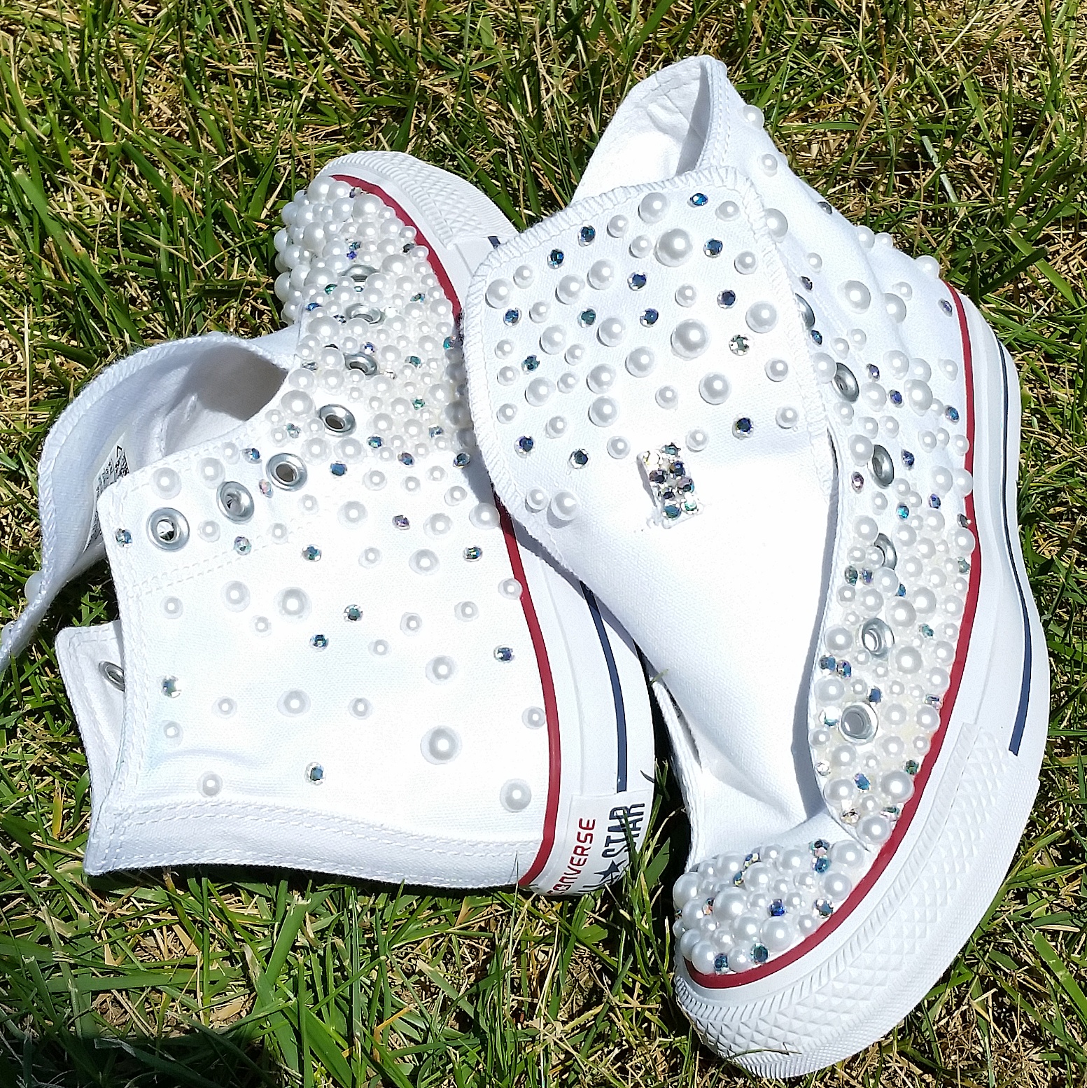Handcrafted custom converse. No two pair are exactly the same. These will for sure turn heads.